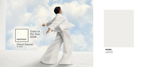 Институт цвета Pantone объявил главный оттенок 2026 года – Cloud Dancer (PANTONE 11-4201). Впервые в истории им стал белый цвет, символизирующий чистый холст, спокойствие и потребность общества в перезагрузке и ясности. Этот мягкий, воздушный белый цвет обещает стать ключевым в дизайне интерьеров и текстиле