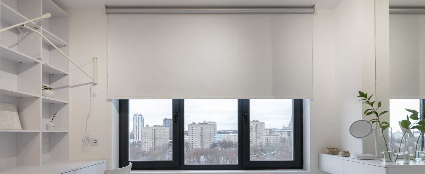 когда необходимо закрыть большое пространство рулонными шторами и при этом минимизировать световой